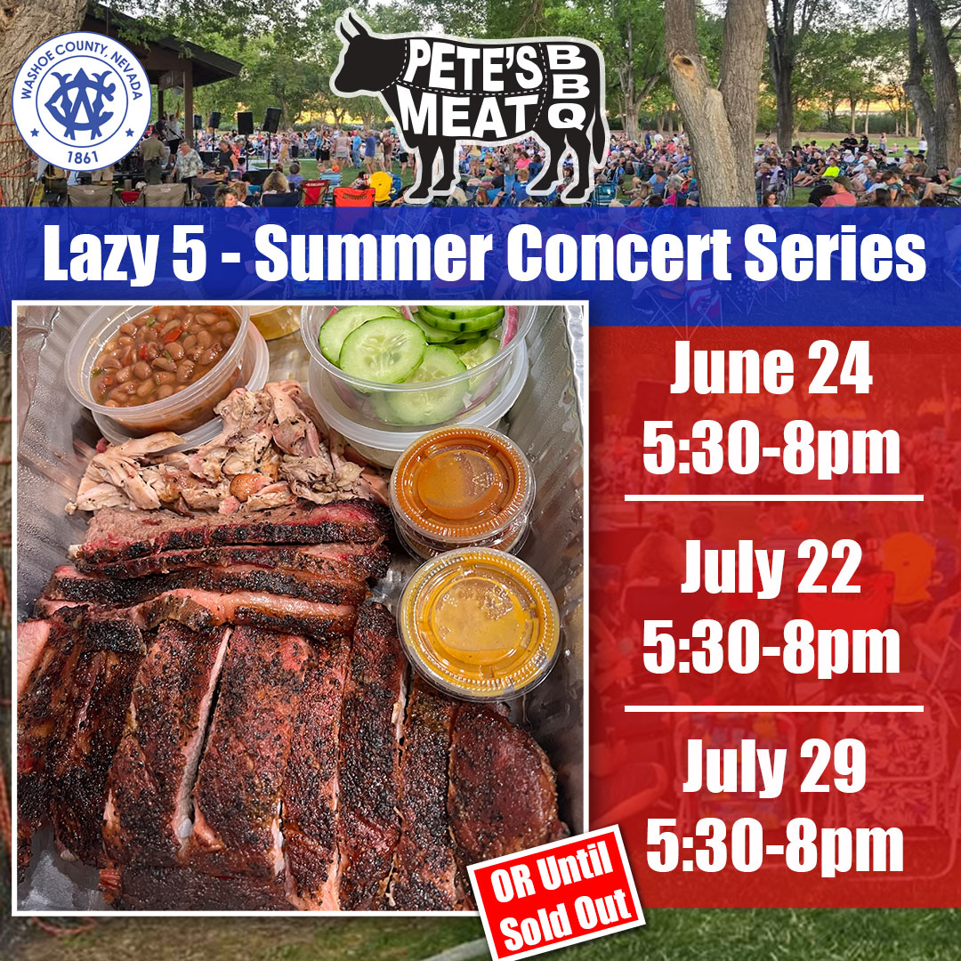 Follow the sound of live music and the smell of Pete’s Meat BBQ at the Lazy 5 Summer Concert Series at the Lazy 5 Park!